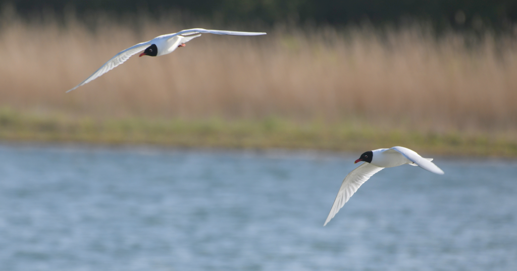 Mediterranean gulls over Crossland's lake