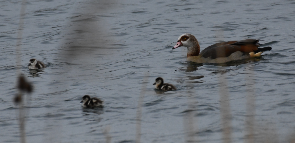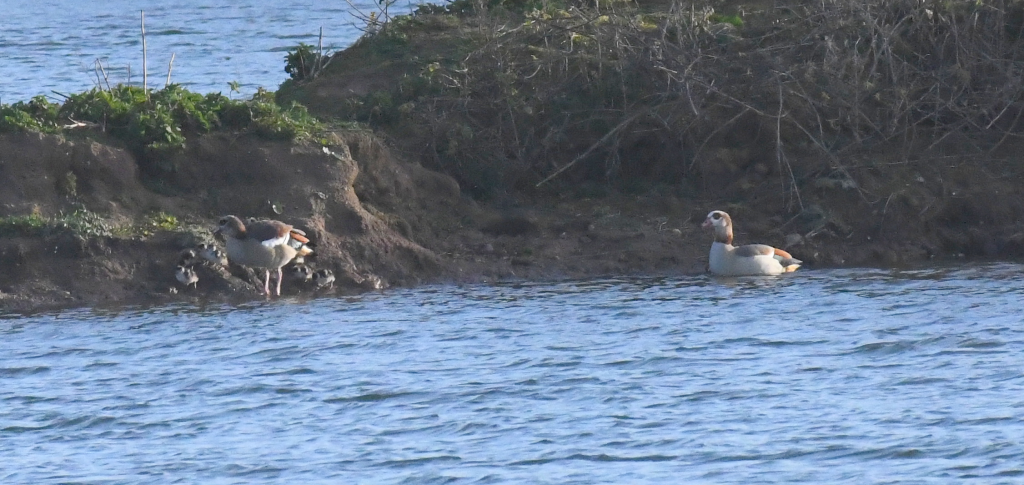 The Eygptian goose pair on Crossland's lake, hatched 9 goslings, a 1st breeding record for the reserve,