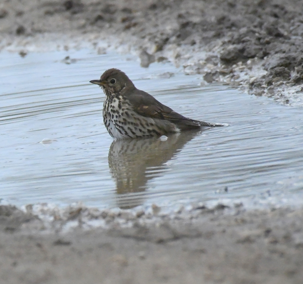 Bathing Song thrush along Dryham lane