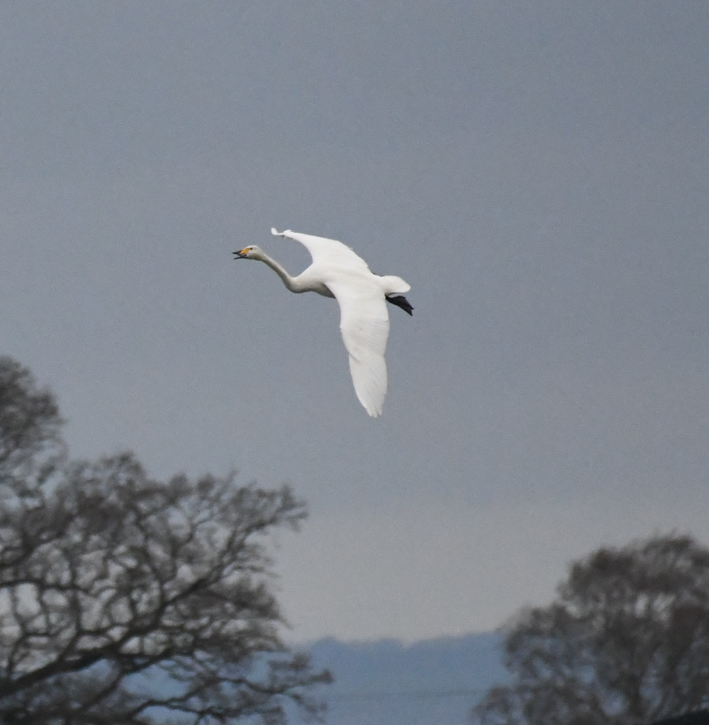 16 Whooper swans flew north, with 3 mobile Pink-footed geese & the Eygptian family of 9 on Crossland's lake,