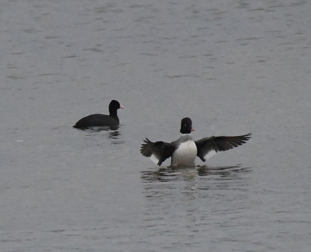 The Goldeneye pair were still on Crossland's lake, along with a pair of Eygptian geese that later flew off to the north,